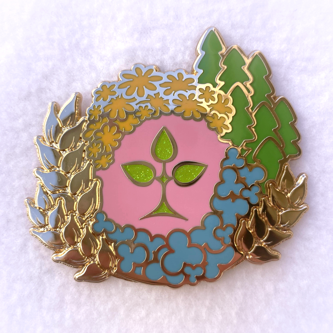 Proclaim your love of the land with this glittery hard enamel pin inspired by Nophica.
